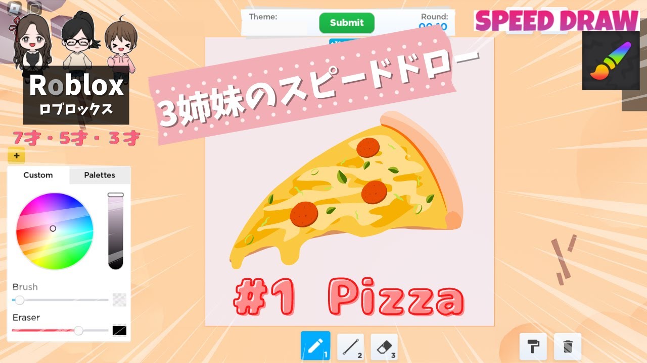 【2倍速】三姉妹のスピードドロー#1(Pizza) | Speed Draw by three sisters (2x speed) | Roblox